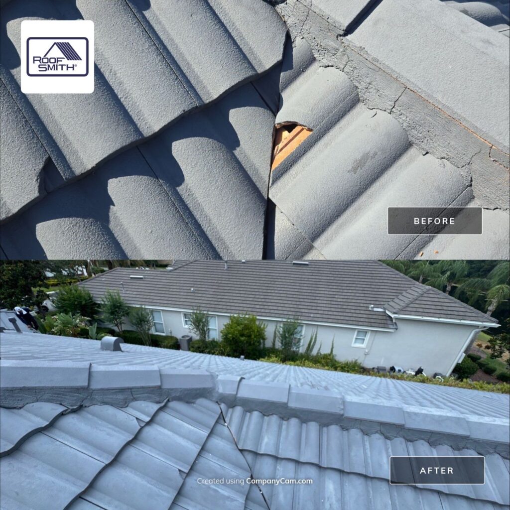 At RoofSmith of Tampa Bay, we routinely perform all types of tile roof repairs including replacement of broken or loose tiles, mortar repairs, and repair of common roof leaks on tile roofs.